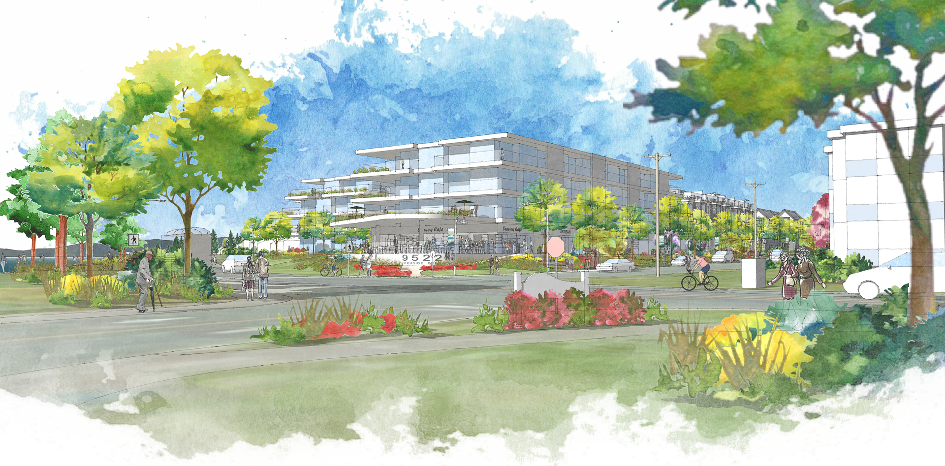 EKISTICS Town Planning + Architecture was brought on to help re-envision the 1.28 ha site as a comprehensive mixed-use village where tourist commercial uses complement a new residential resort oriented product to enhance the waterfront character of this pivotal parcel within the urban fabric of the Town of Sidney. The vision is to create a seaside village featuring a diverse mix of commercial and residential spaces with beautifully landscaped outdoor environments and shared amenities.
