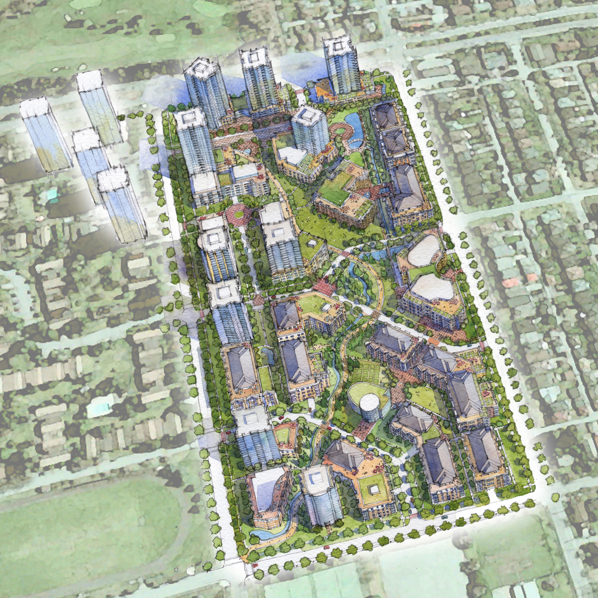Located along Vancouver’s central skytrain corridor, the Pearson Dogwood site is recognized for major redevelopment as one of the City’s newest urban centres. EKISTICS was commissioned to re-envision the 25 acre historic healthcare site as a catalyst for sustainable design within a new transit-oriented urban neighbourhood. Planned as a complete community, the concept for Pearson Dogwood incorporates health and wellness facilities within a high-density mixed-use residential neighbourhood, supported by health care and research facilities, local shops and services, generous parks and community facilities, all with direct access to the Canada Skytrain Line. EKISTICS led the site programming, planning and urban design concept for Vancouver Coastal Health; developing an implementation strategy and financial model in collaboration with UBC Properties Trust to guide the sustainable development of one of Vancouver’s emerging new neighbourhood centres.