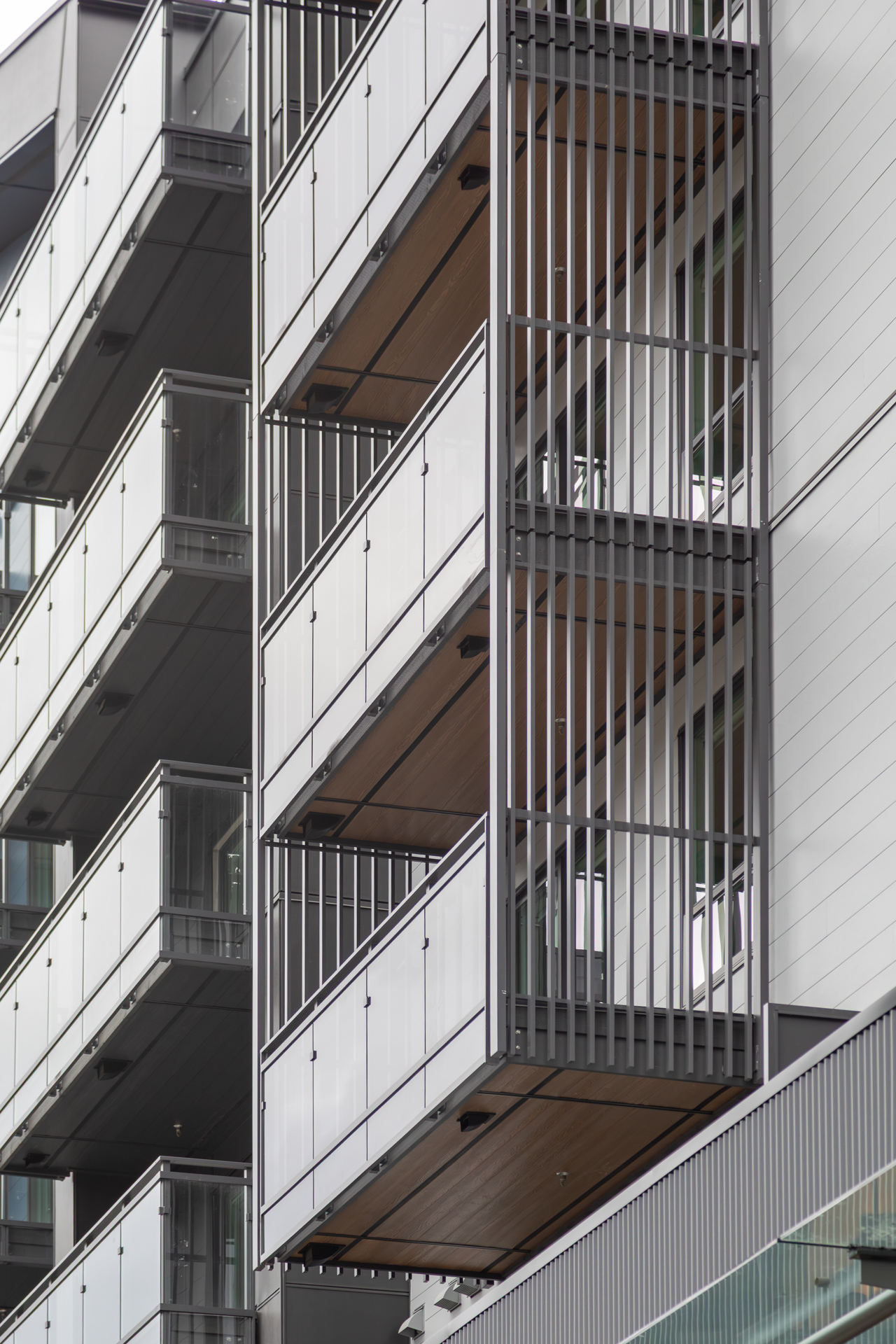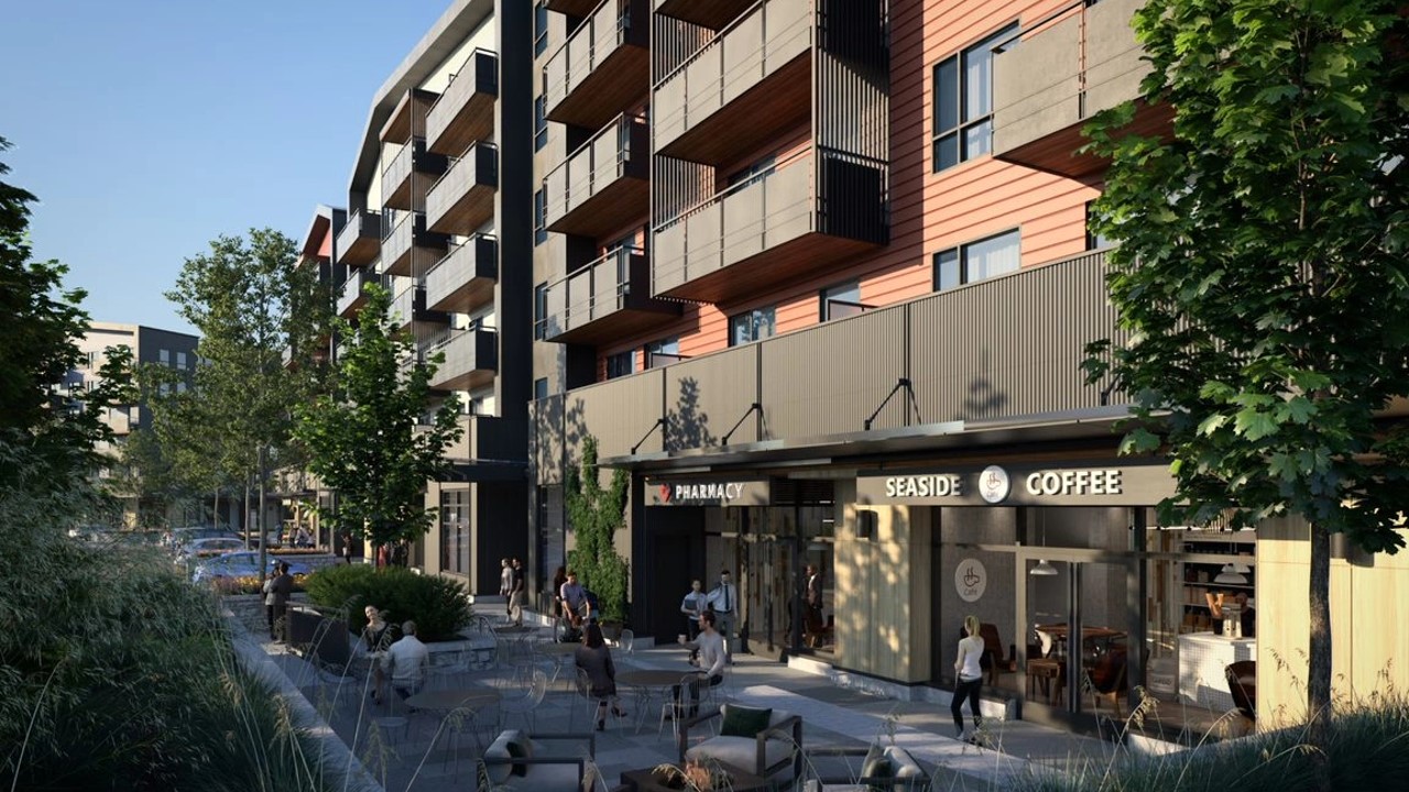 Located in the master planned community of SEA + SKY this mixed use development is a combination of rental housing, ground level commercial ana large daycare space. This duo of apartment buildings was developed to complement the previous phases of the community though its massing / roofline and choice of siding materials. Colour choice also connects this development to the vibrancy of the larger community. Situated over a single parking level the two buildings frame a central plaza and at grade parking. Thoughtful landscape design incorporates commercial and residential amenity spaces at grade and pedestrian connectivity to the larger community and waterfront park.